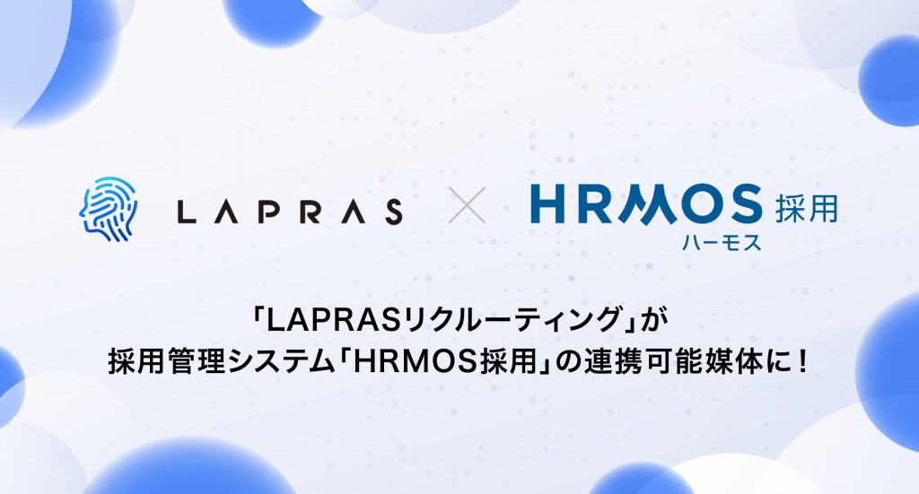株式会社LAPRAS(本社:東京都渋谷区、代表取締役CEO:染谷 健太郎)は、ハイスキルITエンジニア採用サービス「LAPRASリクルーティング」が、株式会社ビズリーチの運営する採用管理システム「HRMOS採用」の連携可能媒体に加わったことをお知らせします。これにより、「HRMOS採用」を利用する企業の皆様が、「LAPRASリクルーティング」をよりスムーズに活用できるようになります。