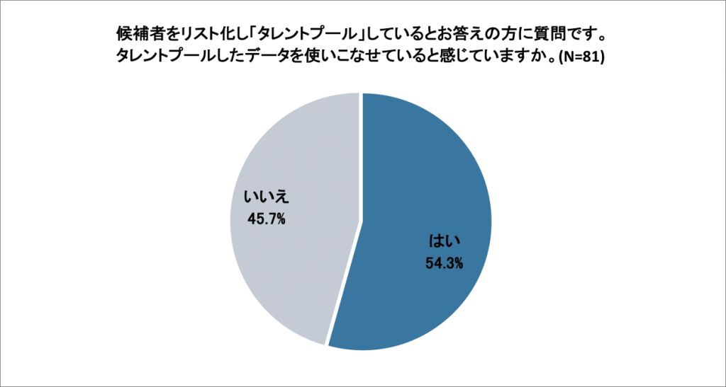一方でタレントプール内のデータを使いこなせていないと自覚しているという回答は45.7%にのぼりました。