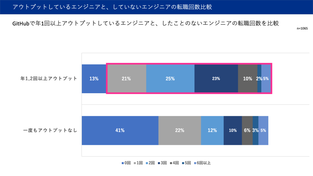 GitHubにアウトプットをしているエンジニアとしていないエンジニアの転職回数比較