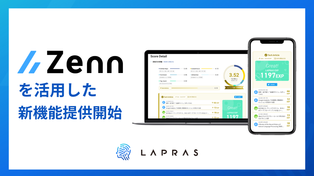 LAPRAS株式会社(所在地:東京都品川区、代表取締役:染谷健太郎 以下、LAPRAS)は、エンジニア向けキャリアマッチングプラットフォーム「LAPRAS」において、エンジニア情報コミュニティ「Zenn」のアウトプット活動をこれまで以上に活用した新機能の提供を2月6日より開始します。提供開始に伴い、キャンペーンも実施します。
