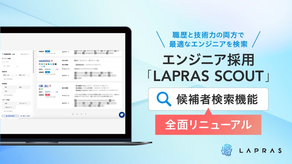 LAPRAS株式会社(本社:東京都品川区、代表取締役:染谷健太郎、以下 LAPRAS社)は、AIスカウトリクルーティングサービス「LAPRAS SCOUT」の検索機能を全面的にリニューアルしました。このアップデートでは、従来の技術力ベースの検索に加え、職務経歴に基づく検索を容易にすることで、エンジニアに頼らず人事担当者ひとりでも、以前よりも迅速かつ容易に候補者を見つけ出すことが可能になります。